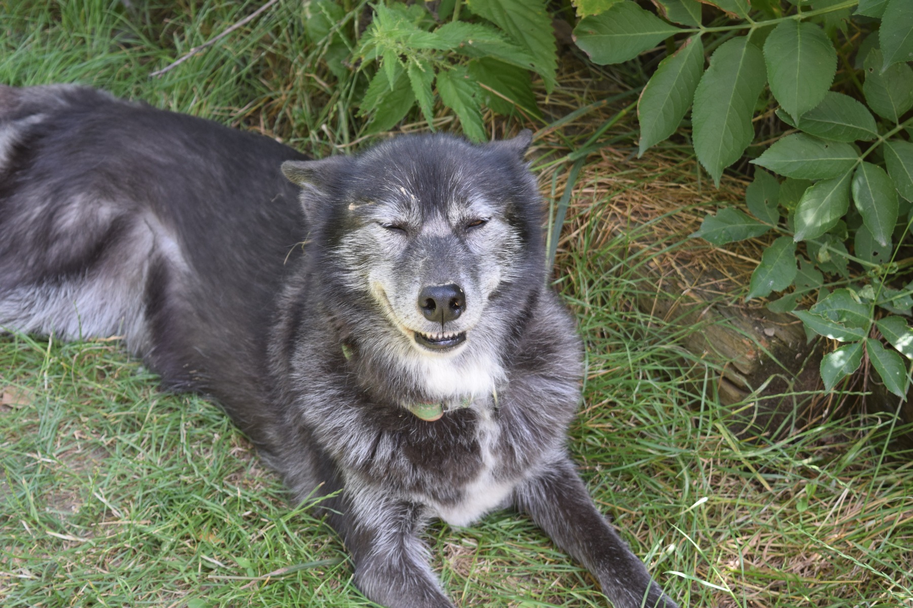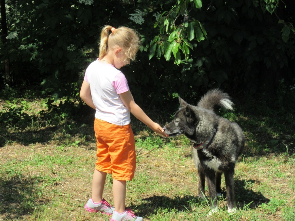 Laska ist eine äußerst sanftmütige Hündin, und hat diese Charaktereigenschaft zum Glück auch an ihre Welpen aus dem C-Wurf weiter gegeben. Sie hat eine besondere Stellung im Rudel und lebt mit Braxi im Garten. Die anderen Huskies sieht sie aber täglich im Auslauf. Sie ist sehr verträglich und geduldig mit anderen Hunden. Im Haus hält sie sich am Liebsten in diversen Betten oder auf der Couch auf. Als gelehrigste Hündin konnten wir ihr auch einige Tricks beibringen und sie mag es als einzige im Rudel mit dem Ball zu spielen.