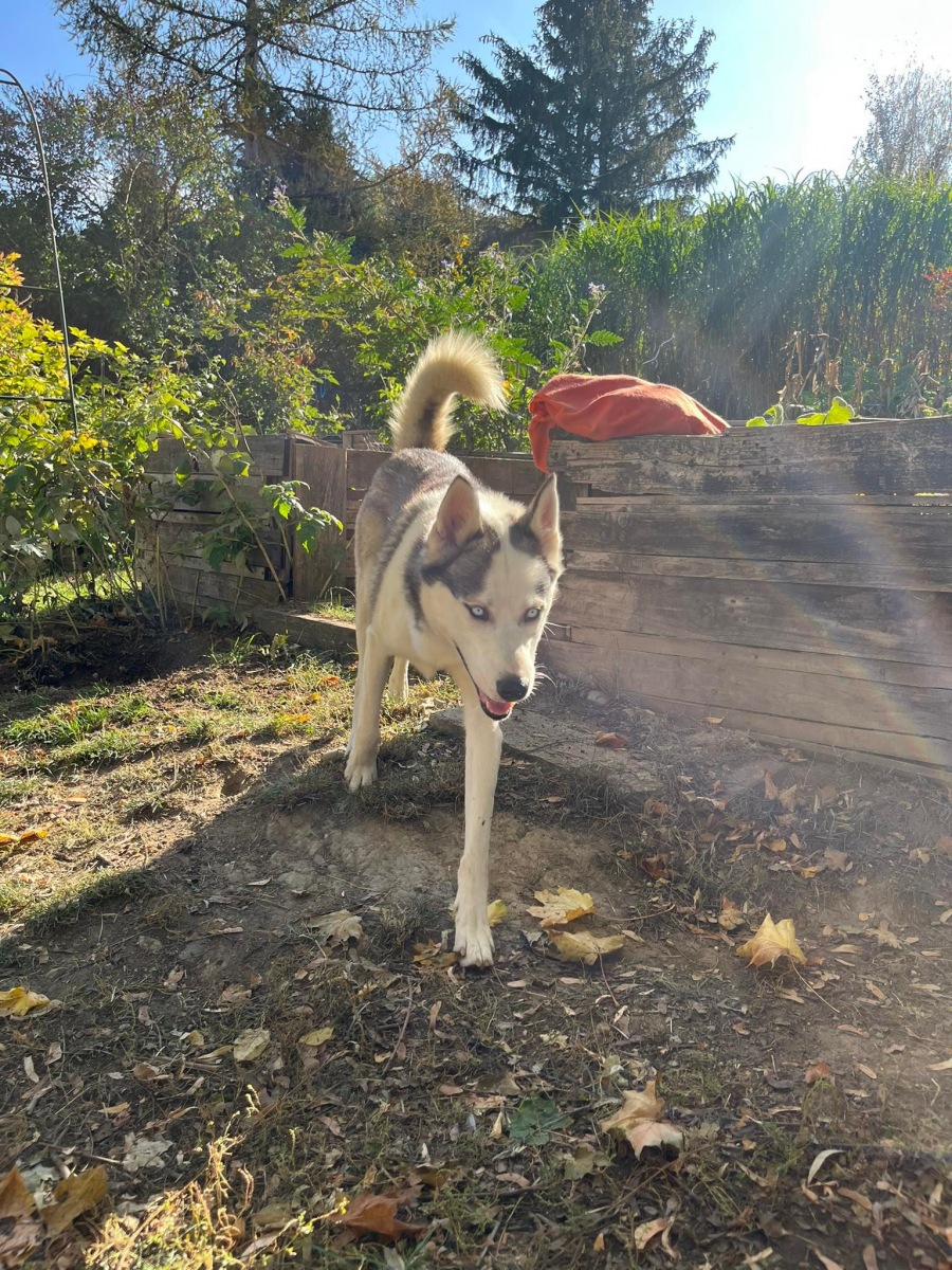 Hades ist im September 2022 zum Snowdragons Husky Team gekommen. Im Alter von 2,5 Jahren hatte er wegen einer Veränderung seiner Familiensituation nach einem neuen Platz gesucht. Wir waren auf der Suche nach einem jungen Rüden und sofort von ihm begeistert. Ich habe ihn gleich nach Schweden zum Herbsttraining mitgenommen und er hat sich gut in der Situation zurecht gefunden. Hades ist vom Verhalten ein sehr untypischer Husky – er möchte mir immer so nah wie möglich sein. Aktuell lebt er bei uns im Haus und wir werden sehen wann er zu Brego, Zora und Fire übersiedelt. Mit den 3 versteht er sich sehr gut und über das gemeinsame Training wächst er immer mehr ins Rudel hinein.
